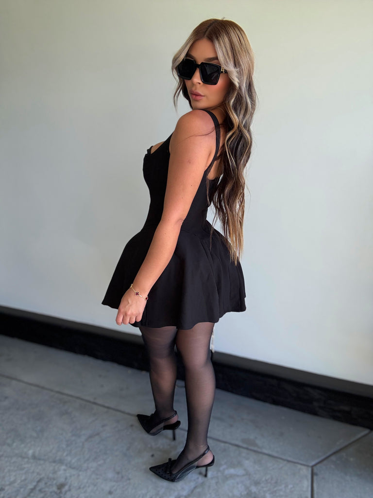 Details : Sleeveless mini dress made from stretch material  model is wearing size small , model is 5.5 height , 38 in bust , 25 in waist and 42 in hips .