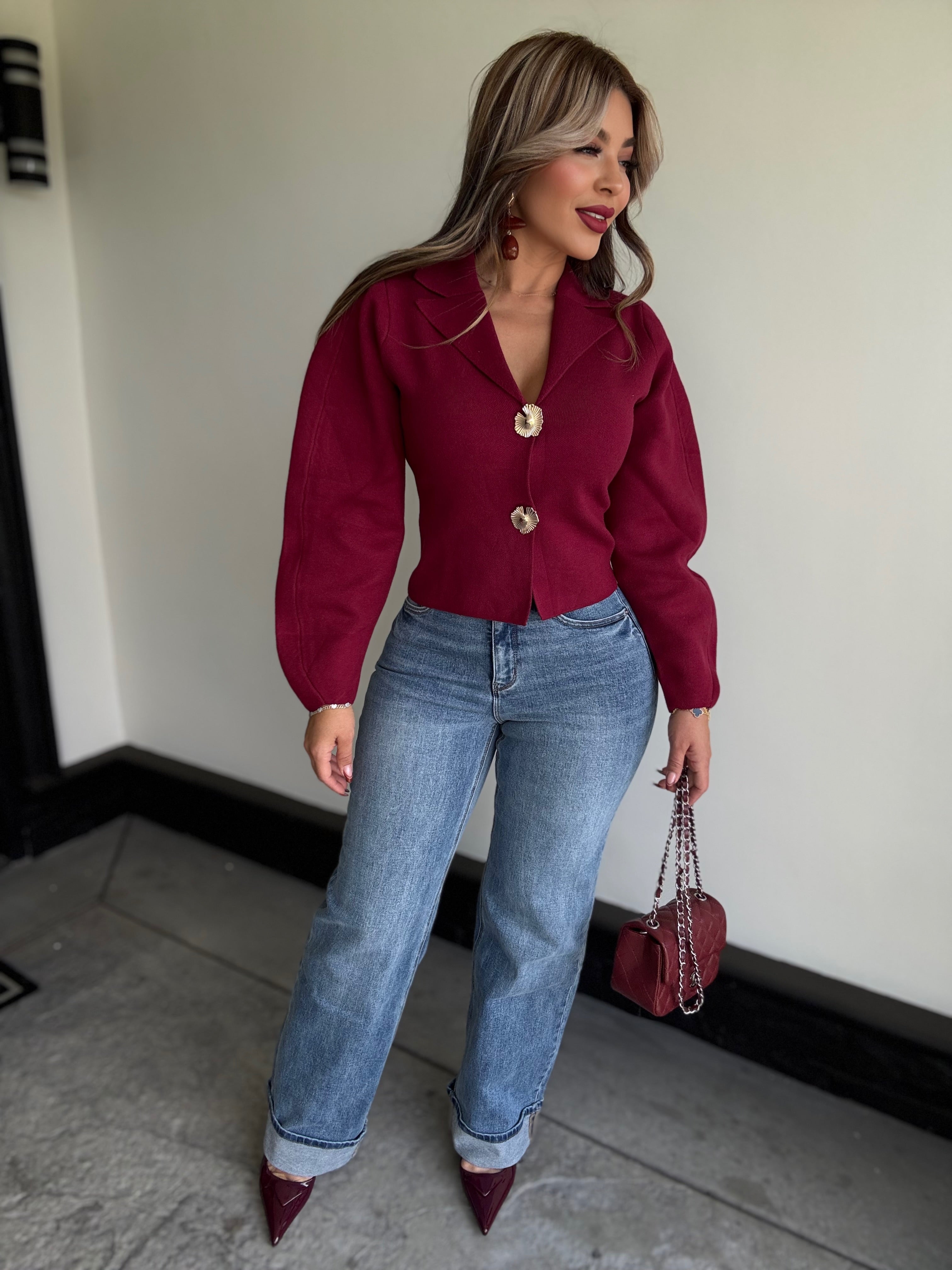 Details: Long sleeve button down sweater made from stretch fabric model is wearing size small , model is 5.5 height , 38 in bust , 25 in waist.