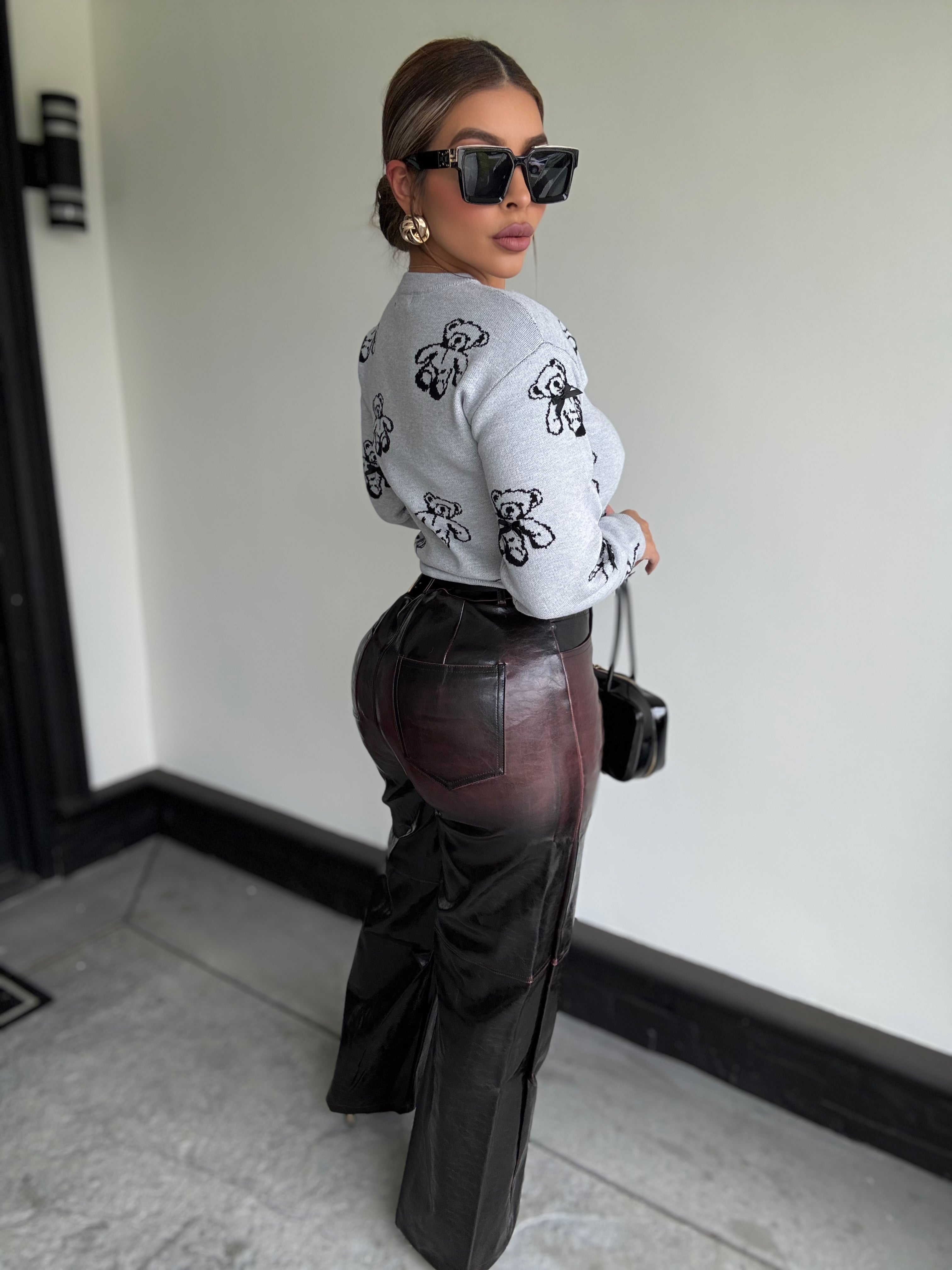 Details : Long sleeve knitted sweater with stretch model is wearing size small , model is 5.5 height , 38 in bust , 25 in waist .