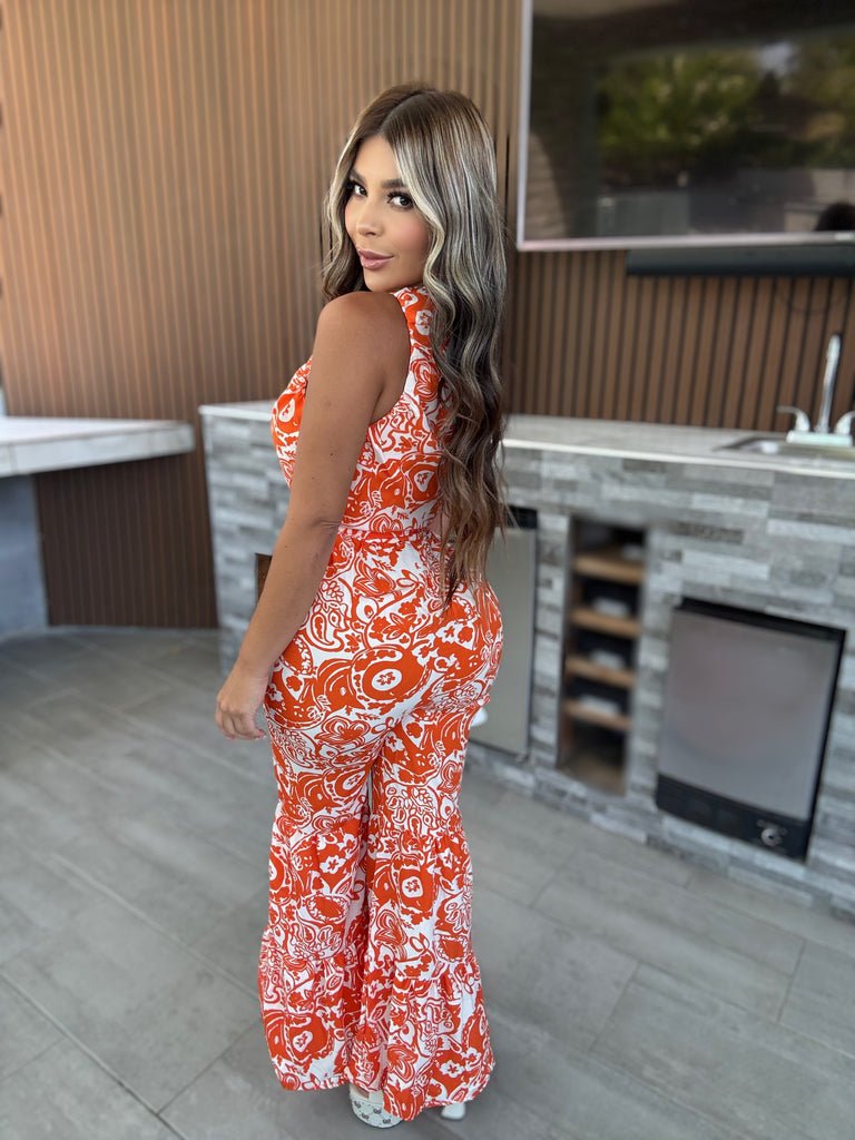 Details: Sleeveless jumpsuit with zipper on the side made from non stretch material , recommend to size up, model is wearing size medium , model is 5.5 height , 38 in bust , 24 in waist and 42 in hips.