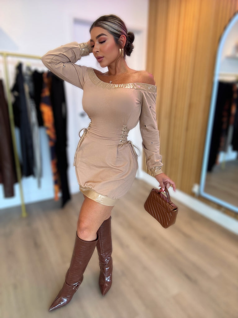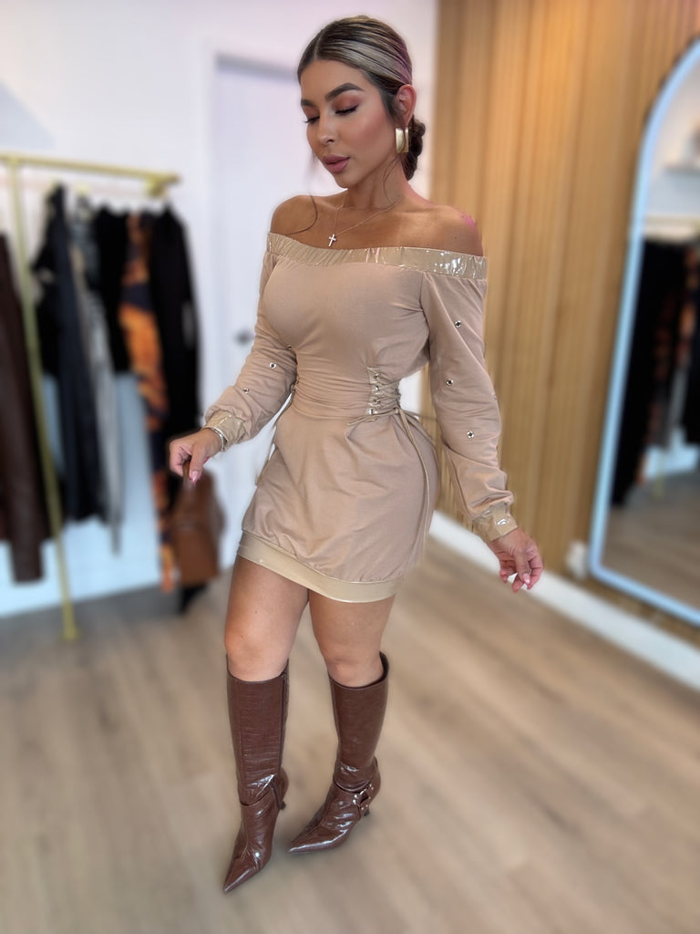 Details :Long sleeve mini dress made from stretch material  model is wearing size small ,model is 5.5 height , 38 in bust , 25 in waist and 42 in hips .