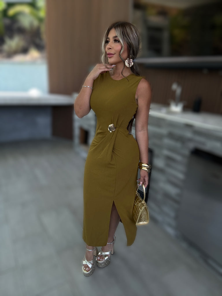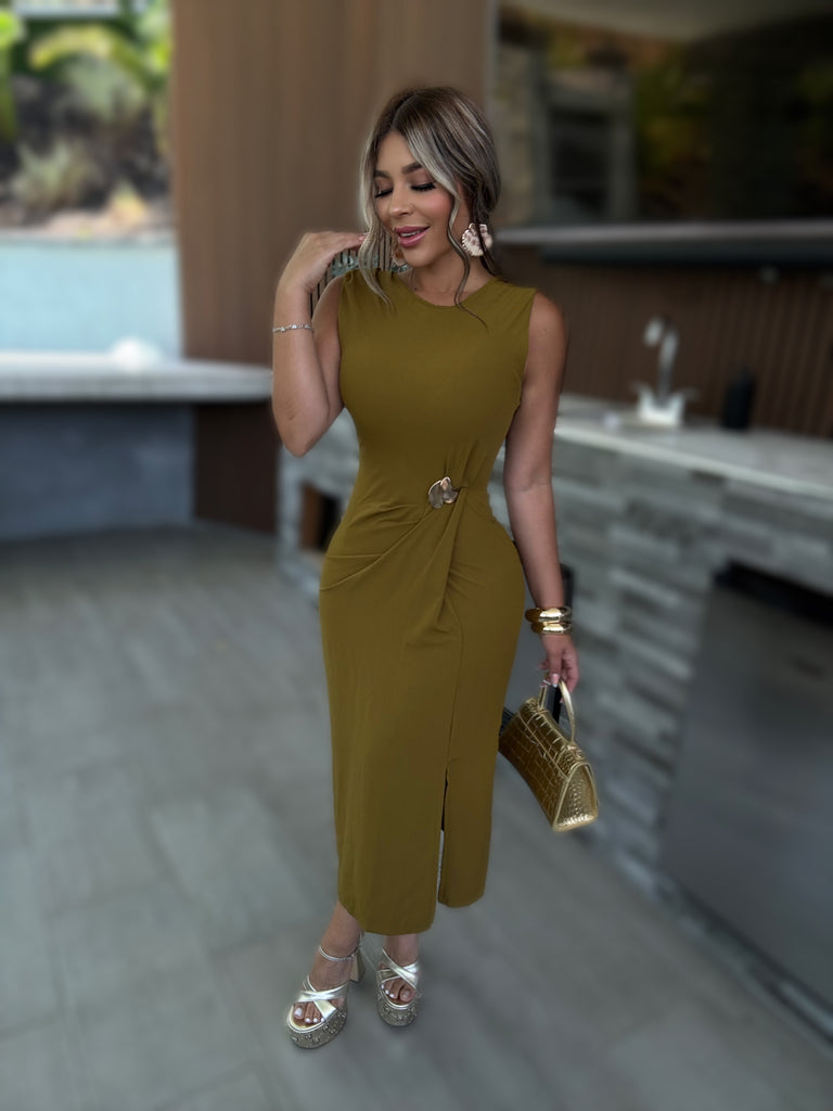 Details : Sleeveless maxi dress made from stretch material model is wearing size small , model is 5.5 height , 38 in bust , 25 in waist and 42 in hips .