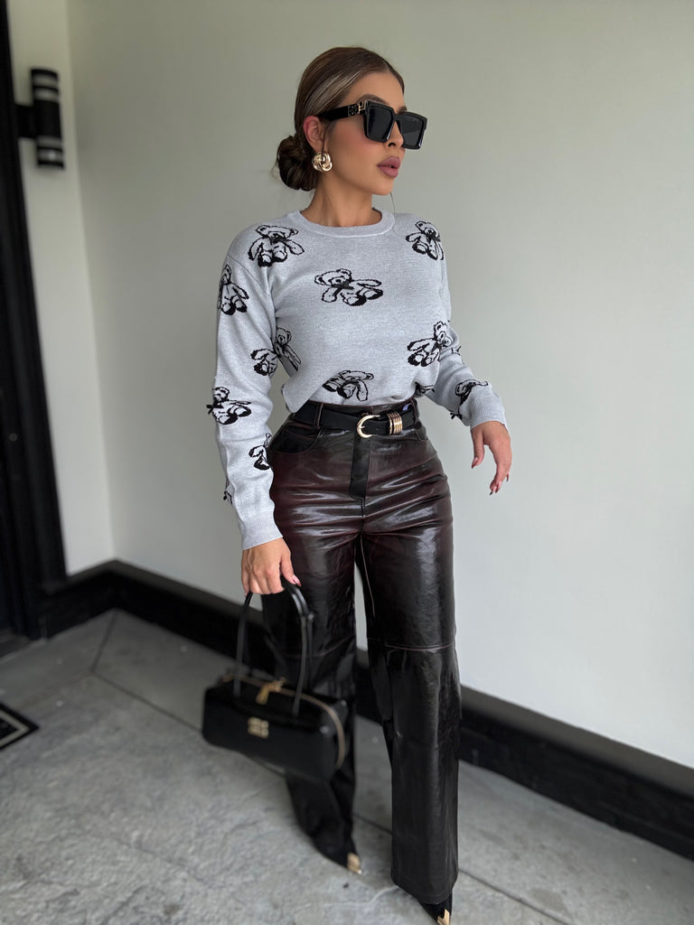 Details : High waisted pants made from faux leather stretch material, model is wearing size medium , model is 5.5 height , 25 in waist and 42 in hips .