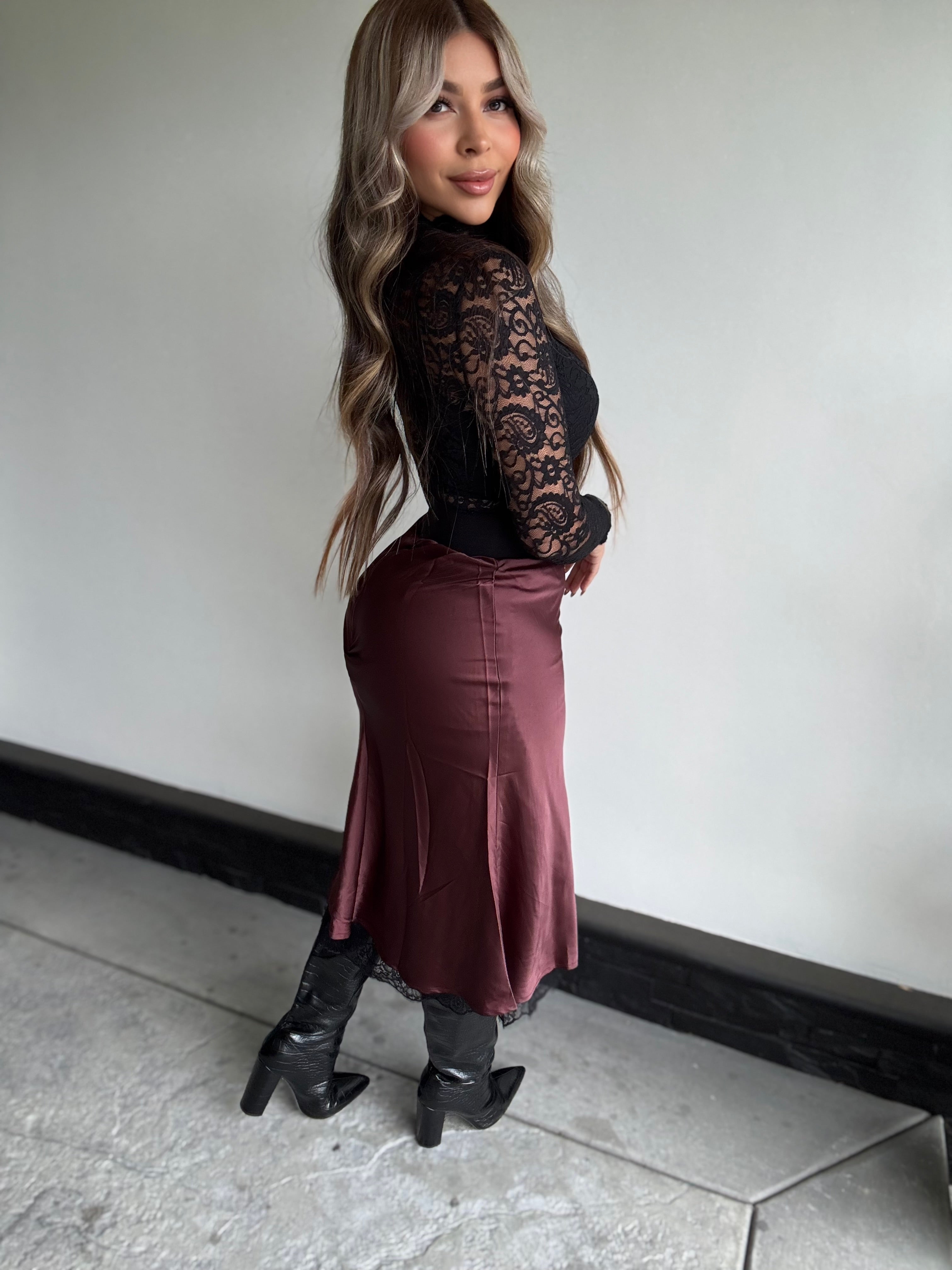 Details : Long sleeve lace top with stretch model is wearing size small , model is 5.5 height , 38 in bust , 25 in waist .