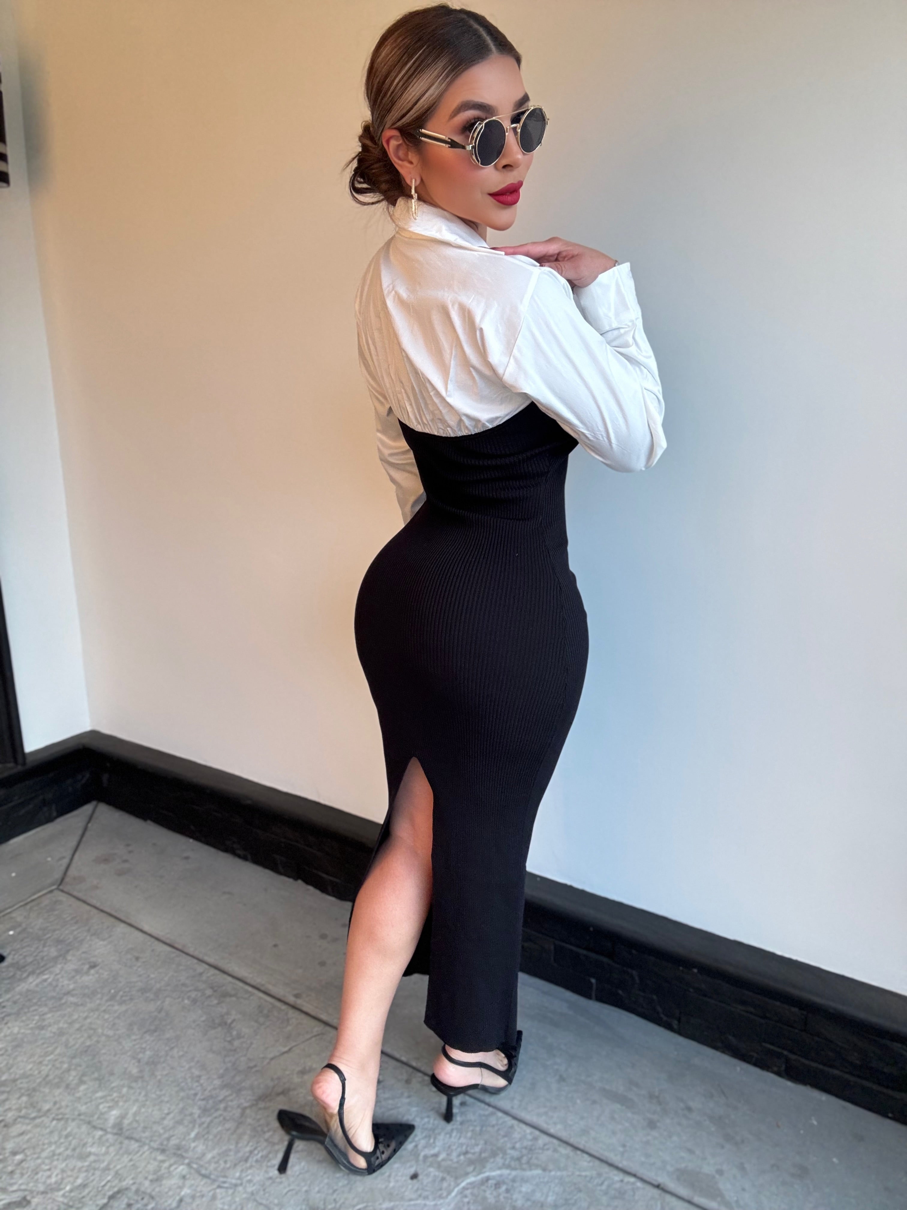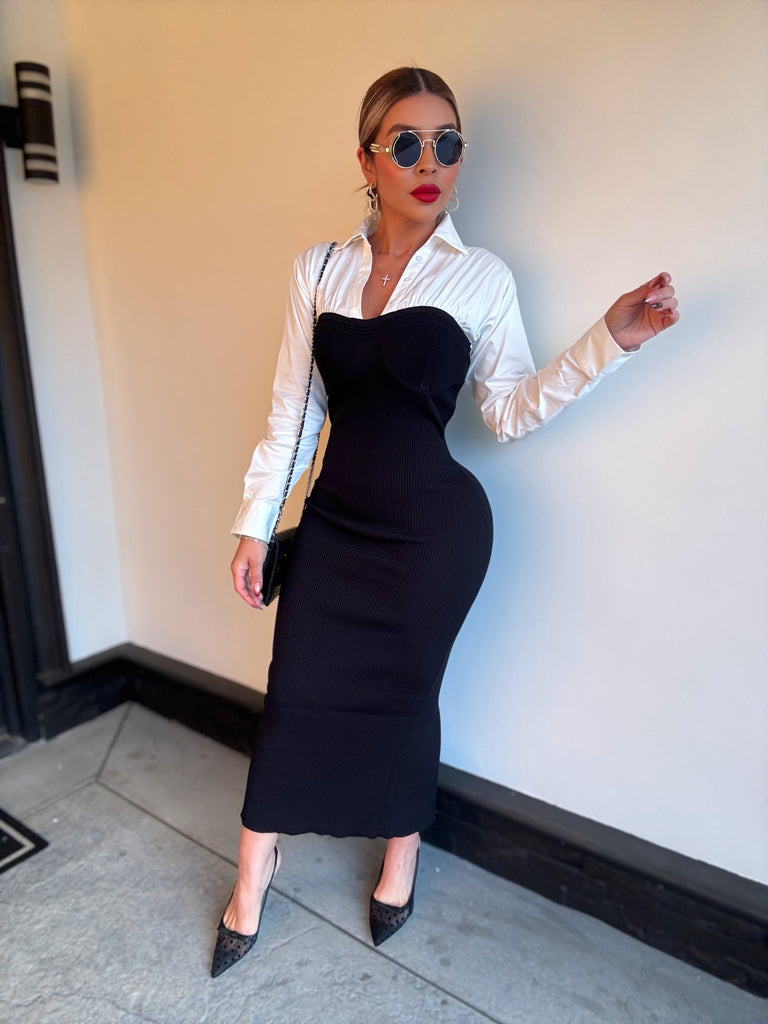 Details : Long sleeve maxi dress made stretch material model is wearing size small , model is 5.5 height , 38 in bust , 25 in waist and 42 in hips .