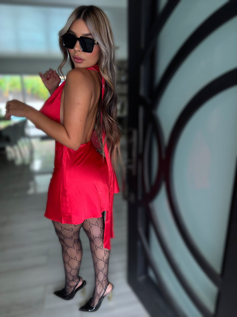 Details :Sleeveless silk mini dress made from stretch material model is wearing size small , model is 5.5 height , 38 in bust , 25 in waist and 42 in hips .