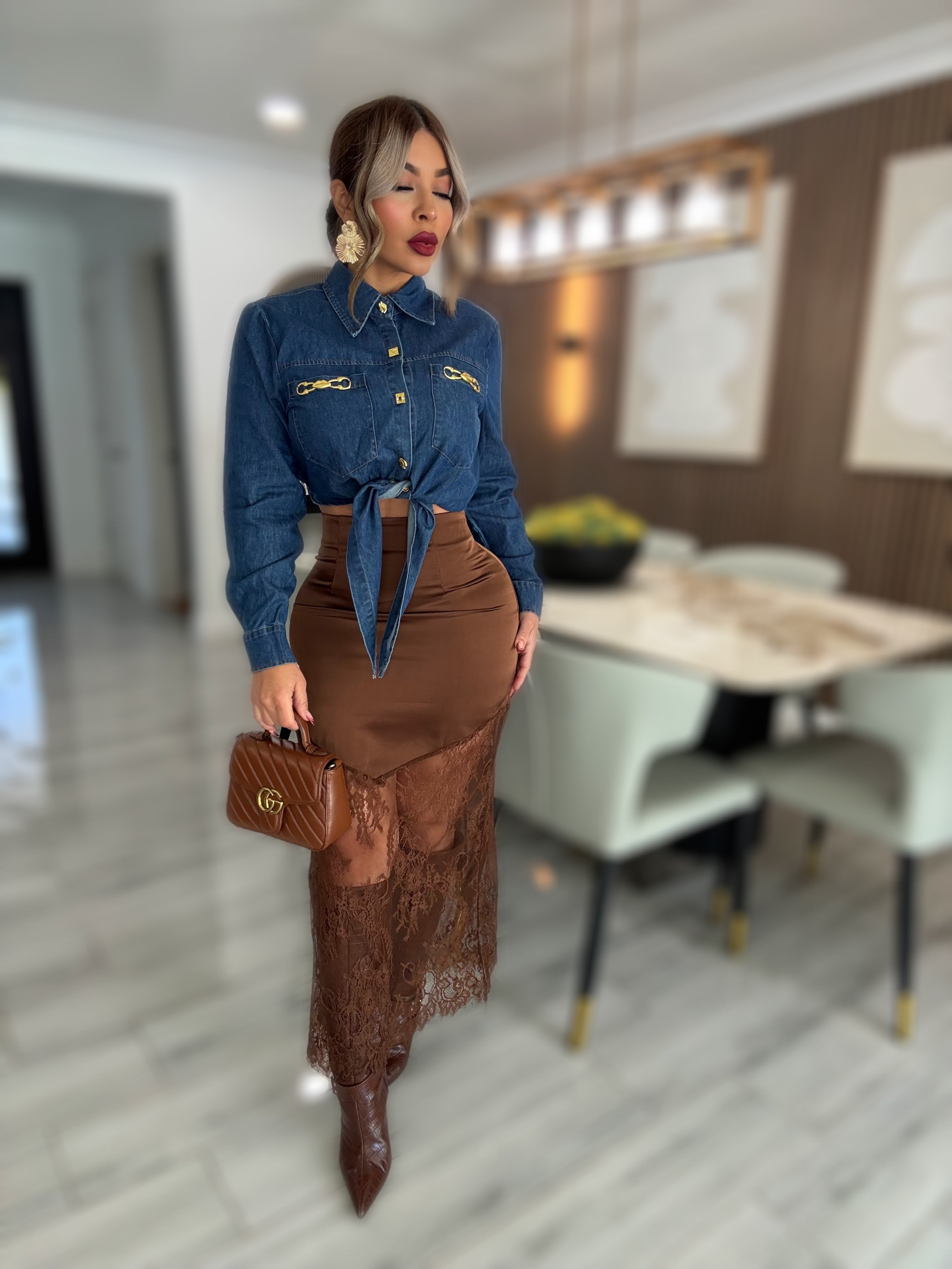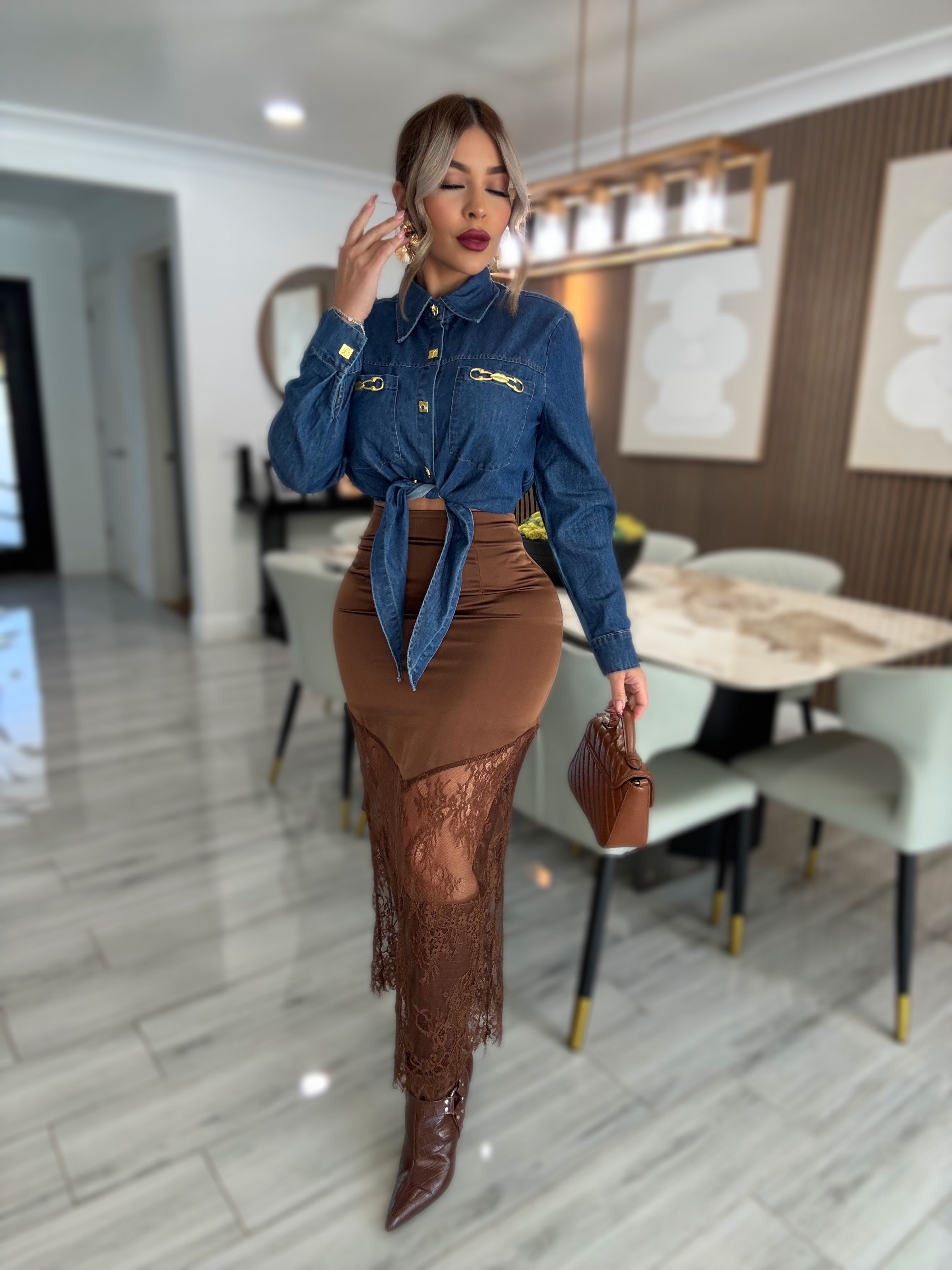 Details : Long sleeve button down top made from stretch material model is wearing size small ,model is 5.5 height , 38 in bust, 25 in waist and 42 in hips .