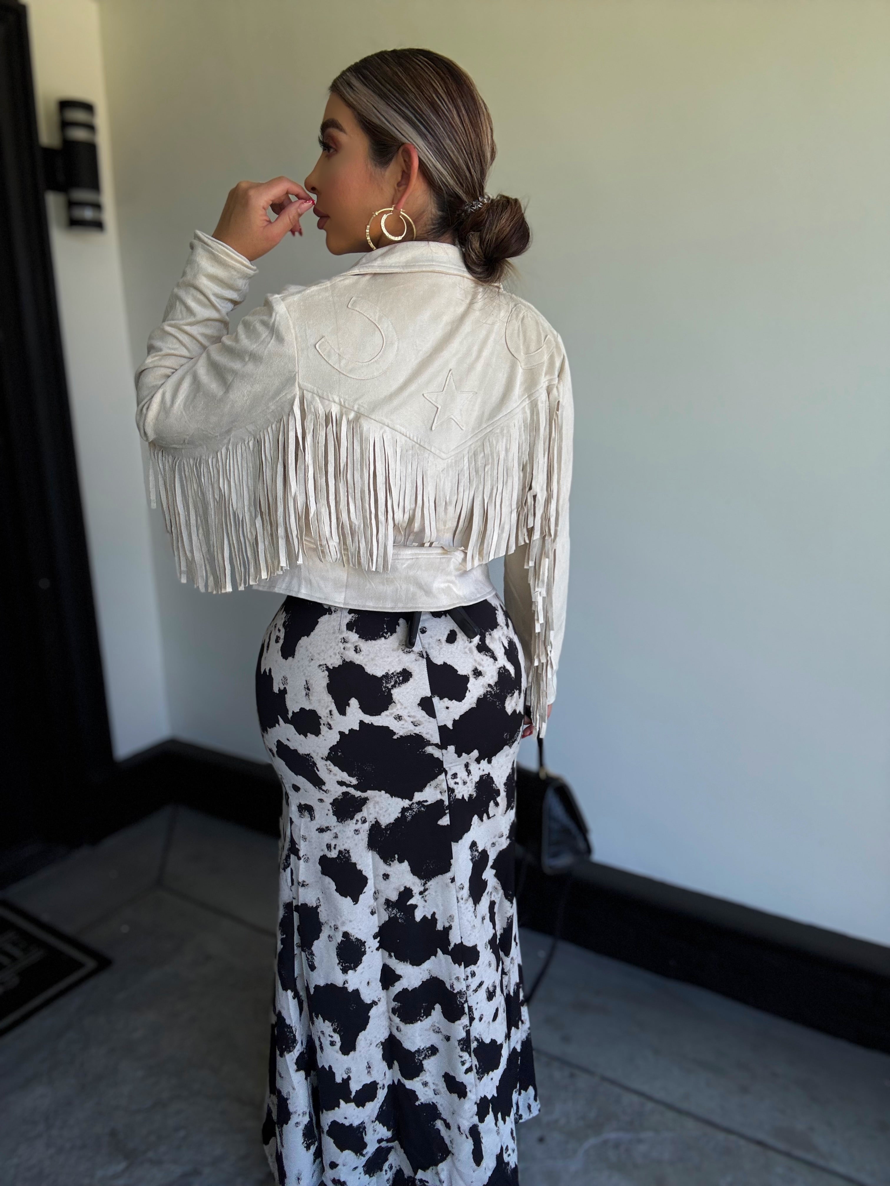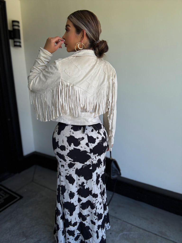 Details : Long sleeve jacket made from stretch material model is wearing size small , model is 5.5 height , 38 in bust and 25 in waist .
