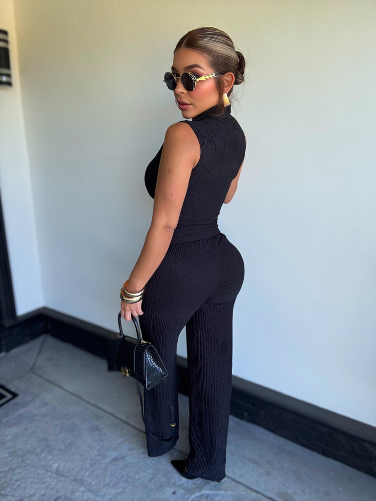 Details: Sleeveless vest top with pants set made from stretch material , very comfortable model is wearing size small ,model is 5.5 height , 38 in bust , 24 in waist and 42 in hips .