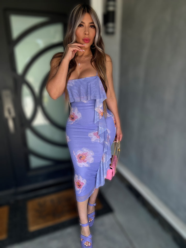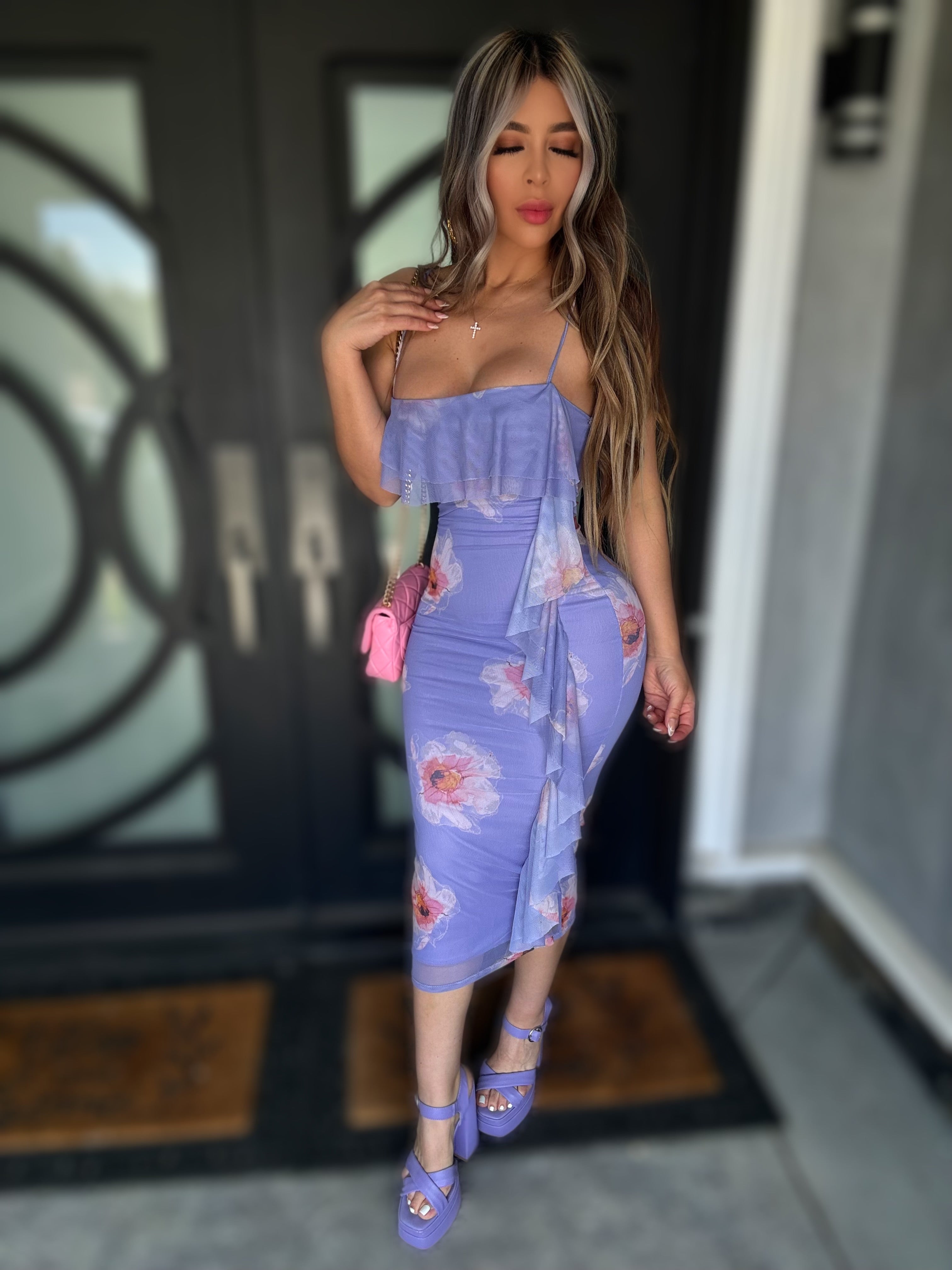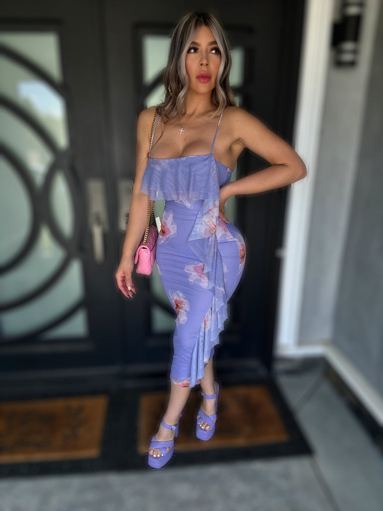 Details :Sleeveless midi dress made from stretch mesh material double layered model is wearing size small , model is 5.5 height , 38 in bust , 25 in waist and 42 in hips .