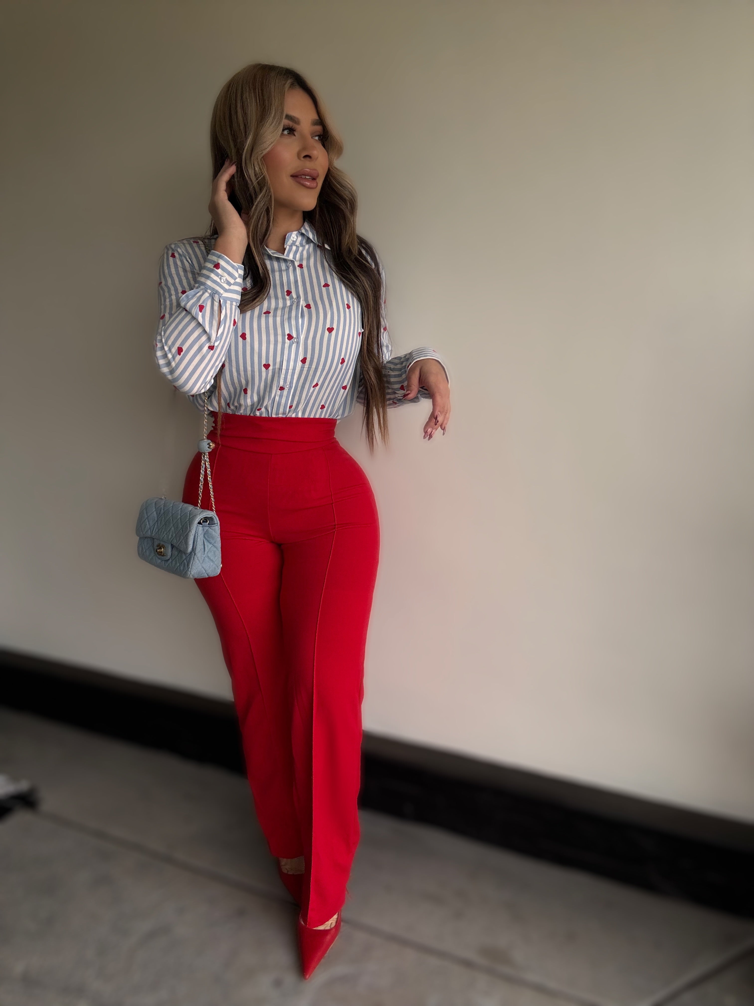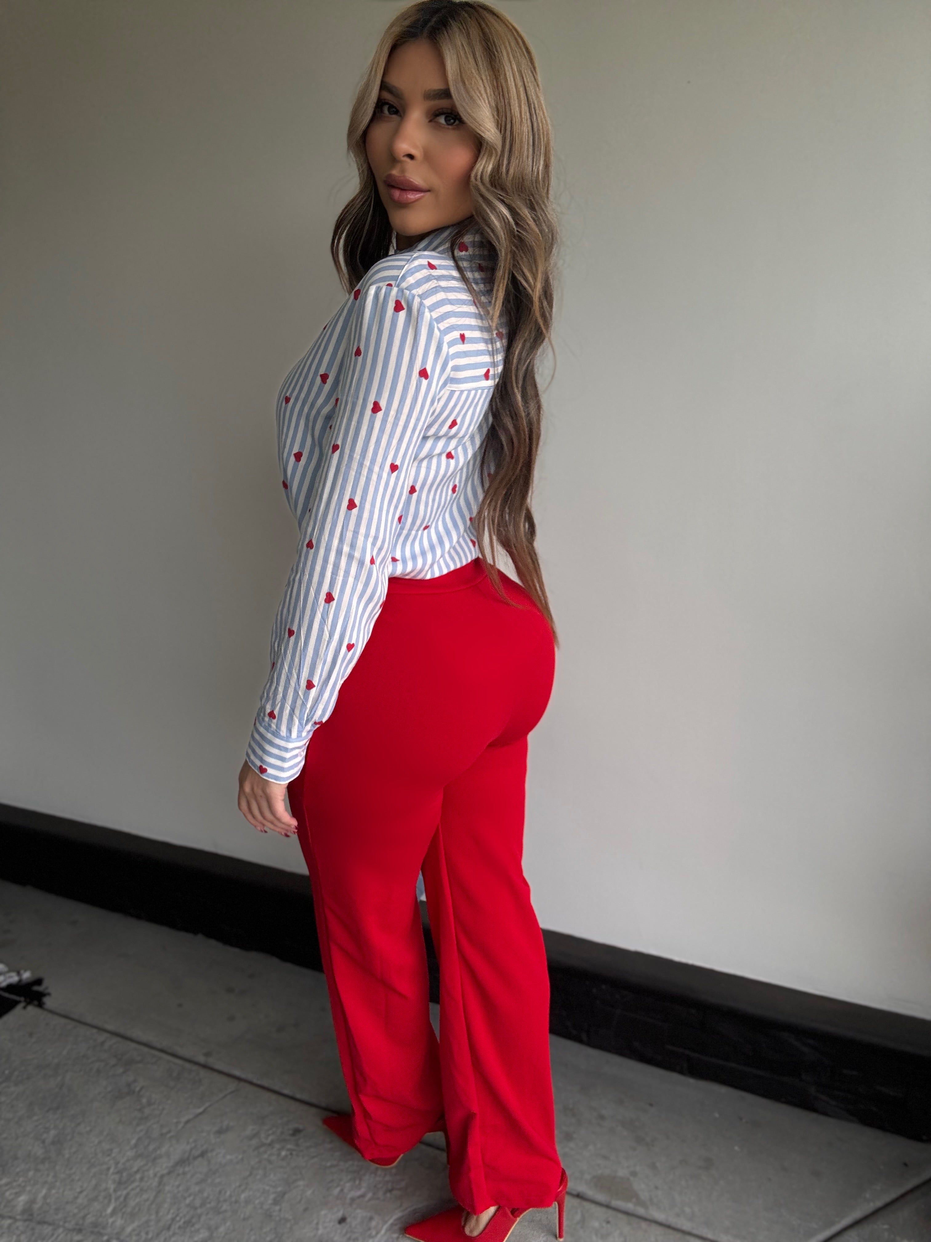 Details : Long sleeve button down top with no stretch model is wearing size small , model is 5.5 height , 38 in bust , 25 in waist .